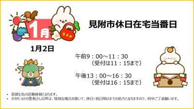 1月の診療予定日のお知らせ